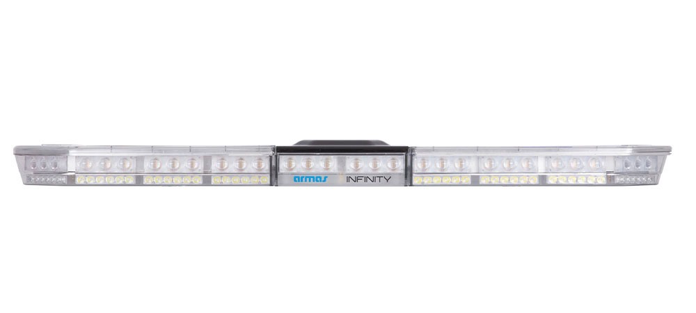 Multicolor LED Teknolojisi ile İkaz ve Alan Aydınlatmasıİki sıralı ışık kaynağı bulunan INFINITY-L’nin alt sırasında beyaz renkli aydınlatma ledi, üst sırasında ise 4 rengin bir arada bulunduğu multicolor LED teknolojisiyle aynı ışık kaynağında kırmızı, mavi, amber ve beyaz (RBAW) renkli ikazın yayınlanması sağlanmaktadır. Üst sıra ikaz, alt sıra projektör amaçlı kullanılsa da istenildiğinde alt kısım flaş edebilmekte, üst kısımda komple alan aydınlatmasına dönüşebilmektedir.
